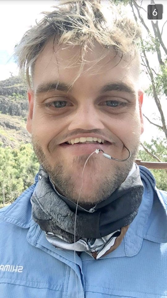 Imagine being waist deep in flowing water, catching a metre plus barramundi and getting hooked to the still swimming fish. OUCH.