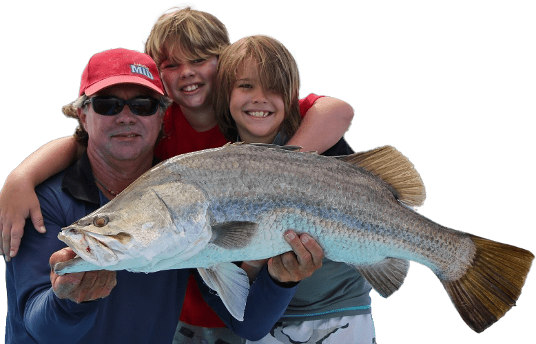 “91cm Barra for my partner’s young fella. First ever real fish and it’s a monster Barra!! Think he is hooked for life now. Thanks to Ryan Moody and his Barra Basics course!”