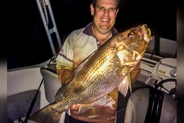 - Traditional screenshots taken at night rising into bait - Bait attracted by the squid light move towards the boat followed closely by large Golden Snapper.