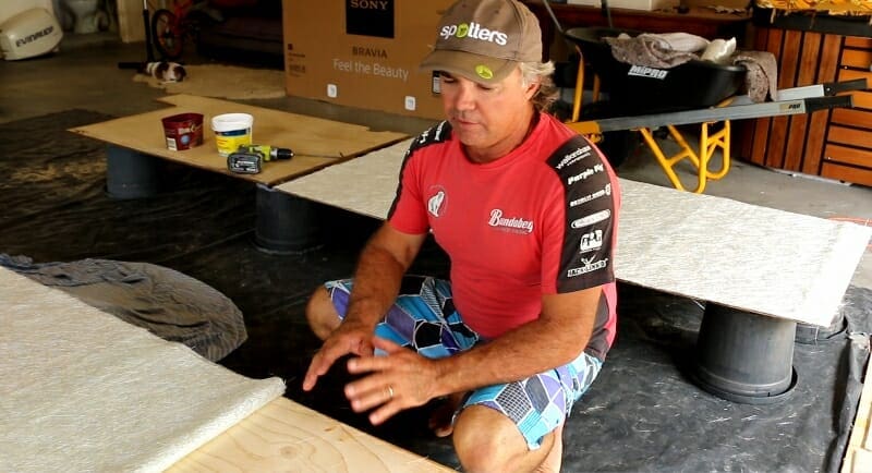 Firstly I coat the underside with polyester resin to seal it.
