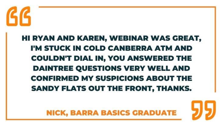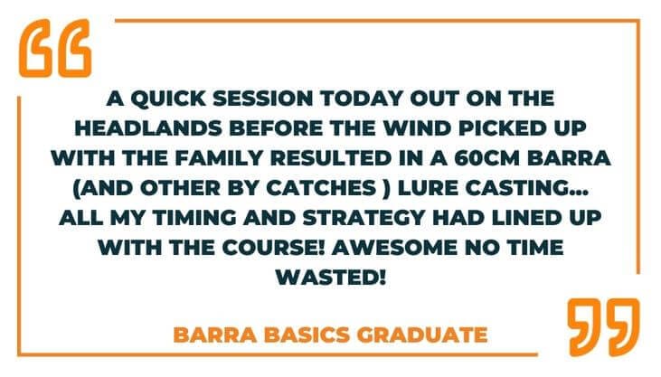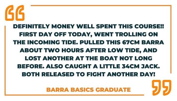 And while I’m not guaranteeing that you will achieve the same results, nobody can (if they do they are probably lying) – the concepts I have taught in the Barra Basics system have helped these fishers turn a frustrating hobby into satisfying (and thrilling) barra catches. And now you can learn the same techniques.