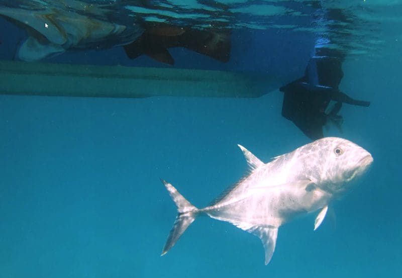 Large GT’s cruise around the boat and can be enticed very close to snorkelers.