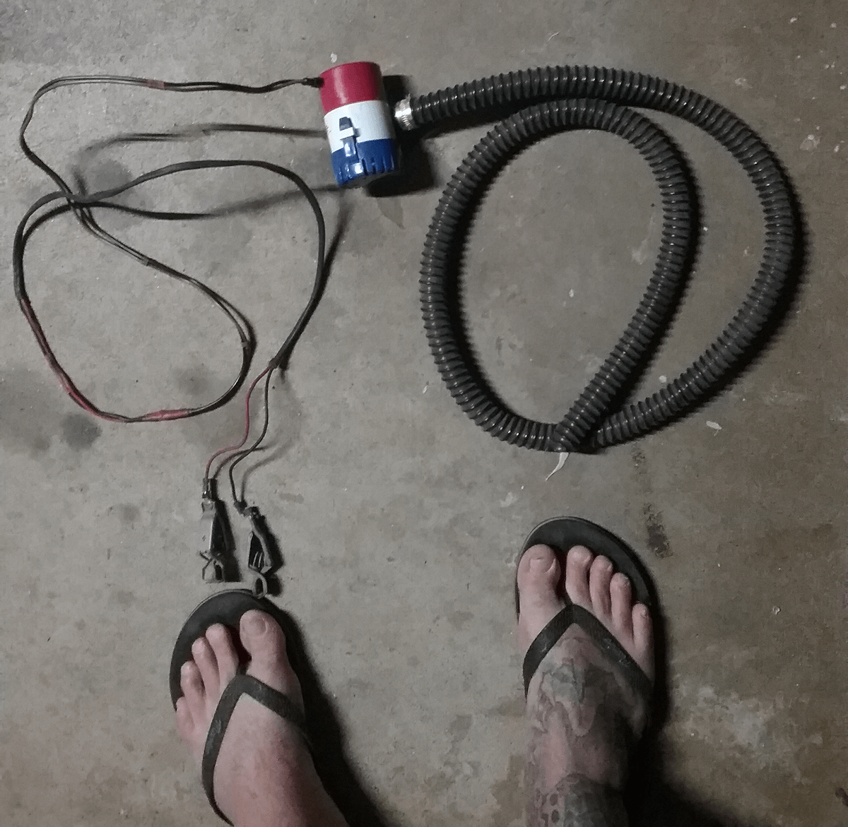 As I looked over my shoulder, angle grinder still in hand, I see my wife leaning so far over the gunwale (sick as), that her feet were dangling way off the deck, with most of her upper body and arms over the outside.