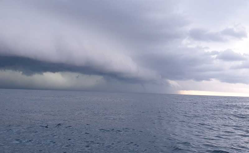 I had an experience I will never forget back in Feb 2016 during the wet/storm season. Nothing special at the start weather report was good. I got up and checked the obs at Arlington. All was good and the visuals were fine other than some lightning a long way off to the south. We headed out of Cairns to Sudbury reef and the weather was good and the seas were smooth. As we passed the cay we saw that there were people who had camped there overnight and there was a gazebo they were using for shelter. We headed to our fishing spot another 5 miles on.