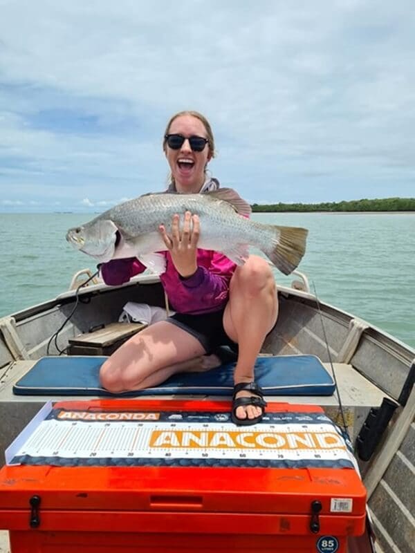 Tom wrote: “Since doing the course, my main goal was to get my girlfriend onto a legal Barra. Had been a long time coming!! SS2 helped me identify an area the fish would be holding and to utilise a side scan to mark the fish. Needless to say, she was pretty stoked with the result, more than 15 fish boated that day!”